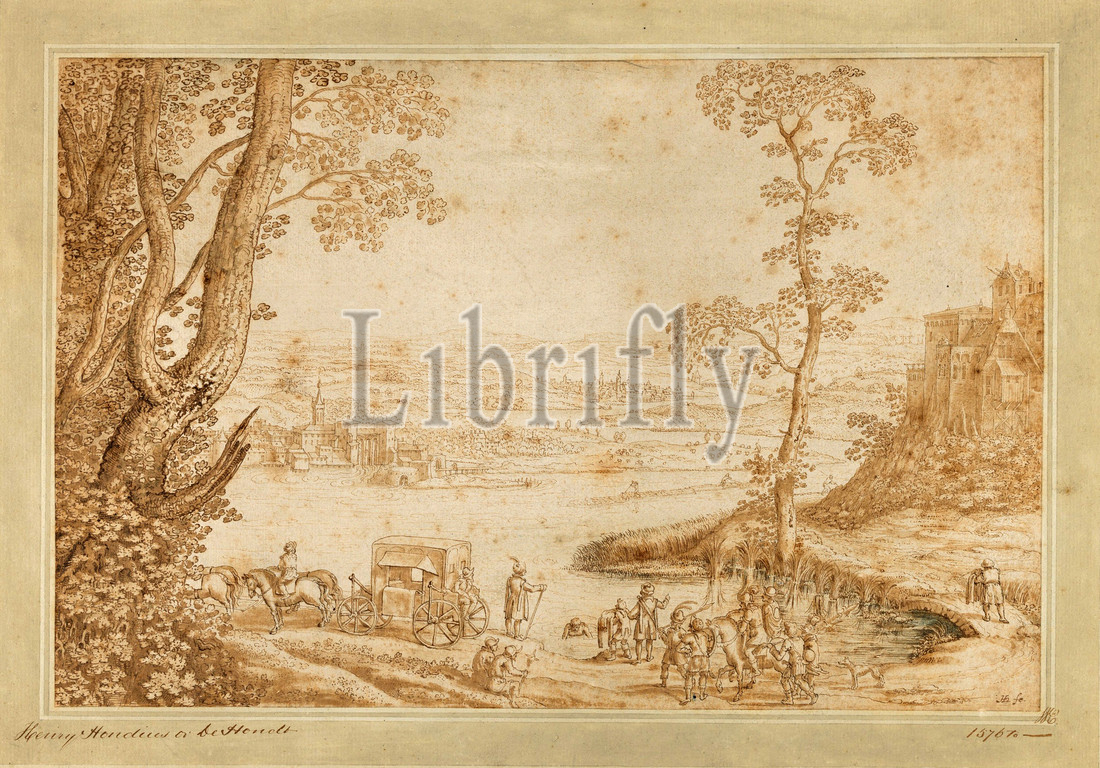 Drawings and Prints, Drawing, A River Landscape with the Baptism of the Eunuch, Artist, Hendrick Hondius I, Netherlandish, Duffel 1573–1650 Amsterdam, Hondius, Hendrick I, Netherlandish, 1573, 1650, early 17th century, 1597, 1650