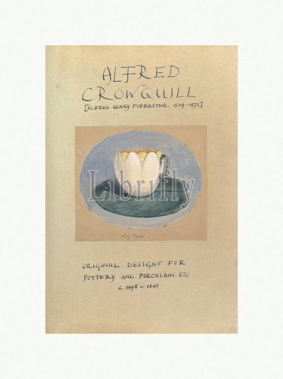 Drawn title page inscribed 'Alfred Crowquill [Alfred Henry Forrester, 1804–1872], Original Designs for Pottery and Porcelain, ca. 1845–1855,' with Drawing of Lily Cup, 1845–55, Pen and ink, watercolor and gouache, sheet: 16 3/4 x 11 7/16 in. (42.5 x 29 cm), Alfred Henry Forrester [Alfred Crowquill] (British, London 1804–1872 London)