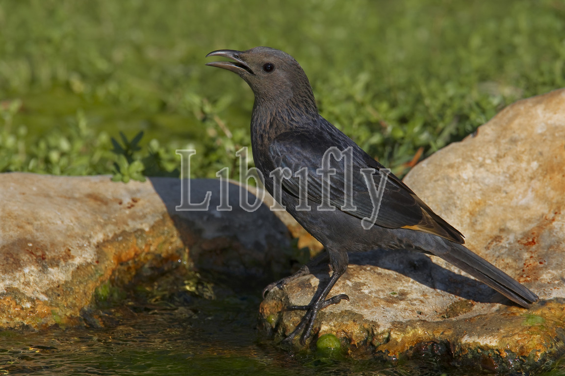 Drinking, Female, Tristram's Starling, Onychognathus tristramii, Oman, nature, bird, animal, wildlife, wild, fauna, natural, feather, sky, beak, wing, outdoor, freedom, colourful, Liszt, Natural History, ornithology, vertebrate animals, photography, color image