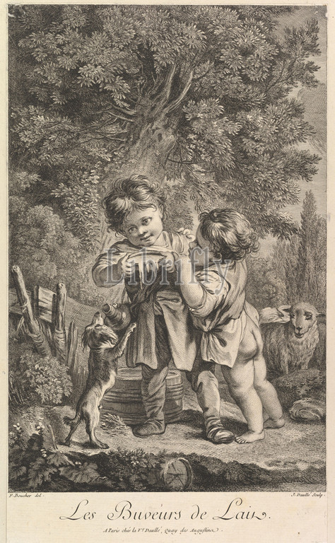 Drinking Milk, 18th century, Etching, engraving, Sheet, trimmed, 14 5/16, 8 1/8, 36.3, 20.7 cm, Prints, Jean Daullé, French, Abbeville, 1703–1763, Paris, After François Boucher, 1703–1770
