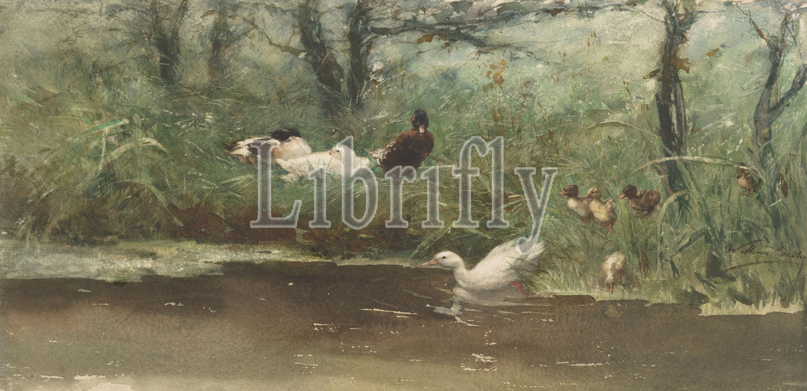 Ducks, ditch, water-birds, duck, domestic waterbirds, Willem Maris, mentioned, object, 1844, 1910, paper, watercolor, paint, chalk, brush