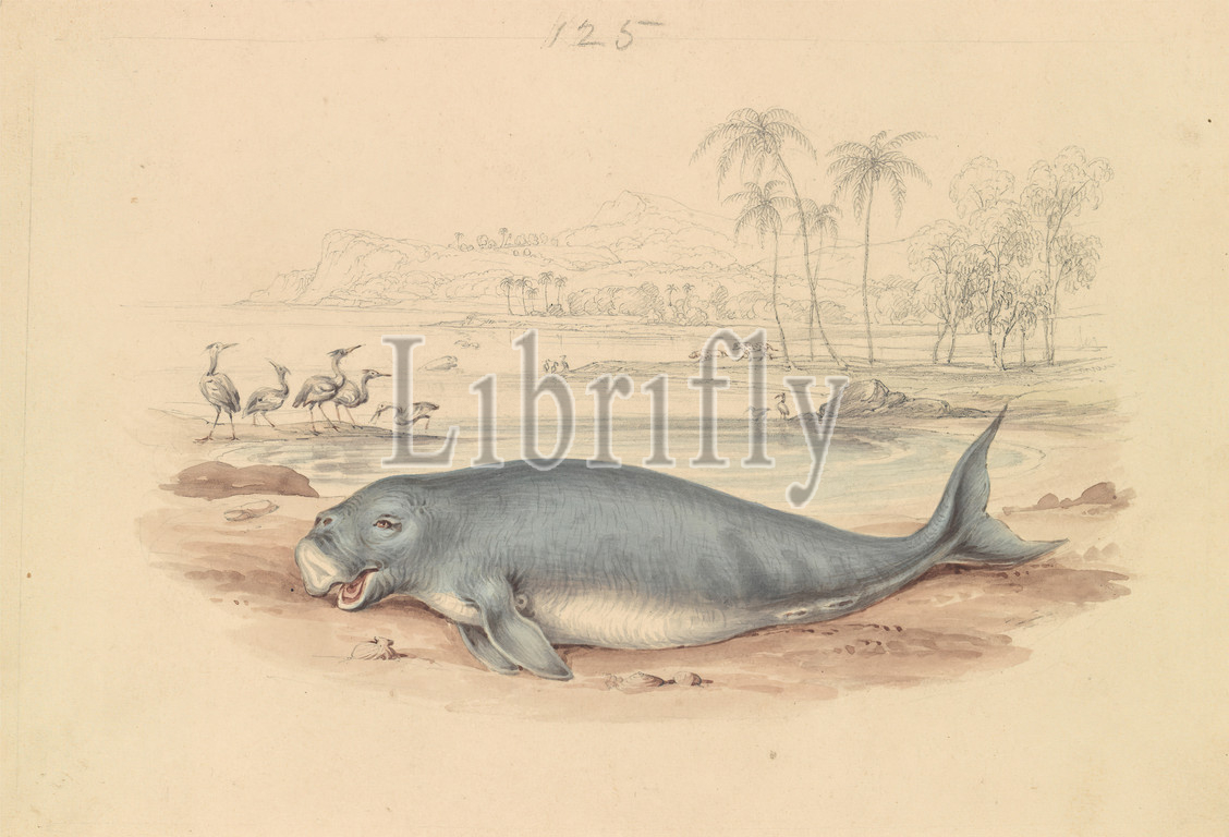 Dugong, James Stewart, 1791–1863, British, ca, 1837, Watercolor, graphite, pen, brown ink, thick, smooth, cream, wove paper, Sheet