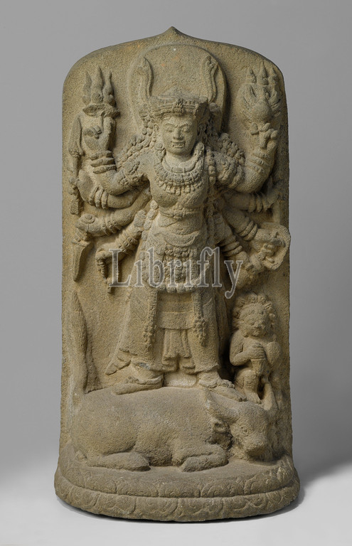 Durga Killing, Buffalo Demon, Stone statue, Hindu goddess, Durga-who-kills, buffalo, Durga Mahishasuramardini, representations, goddesses, demi-goddesses, heroins etc, Hinduism, Buddhism, Jainism, demons, non-Christian religions, Oost-Java, c, 1300, 1500, extrusive rock