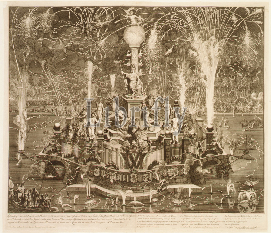 Dutch Victory, French, Spanish, Vigo Bay, Fireworks, Hague, December 13, 1702, Etching, engraving, Prints, Jan van Vianen, Dutch, 1660–1726