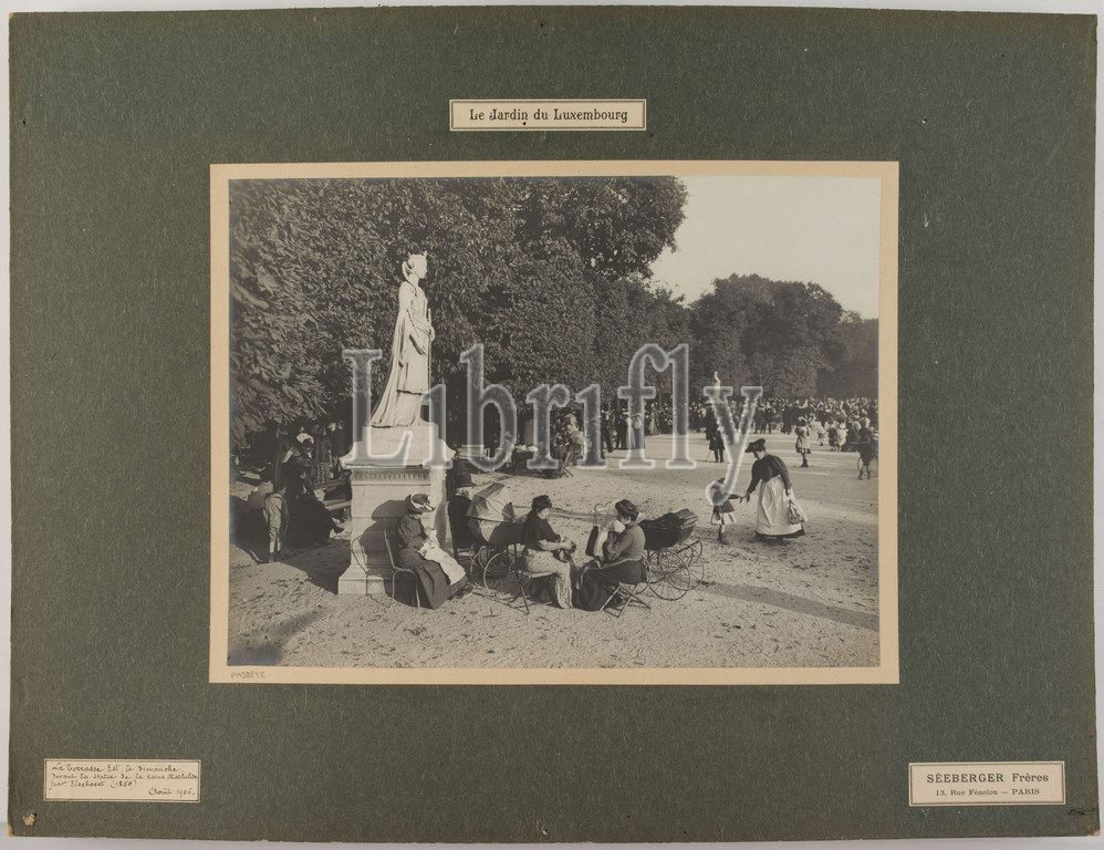 The East Terrace of the Luxembourg Gardens, near the statue of Queen Mathilde, 6th Arrondissement, Paris, Séeberger Frères, Photographer, In 8-1906, 20th century, Graphic Arts, Photography, Gelatin silver print, Height: 29.3 cm, Width: 38.8 cm