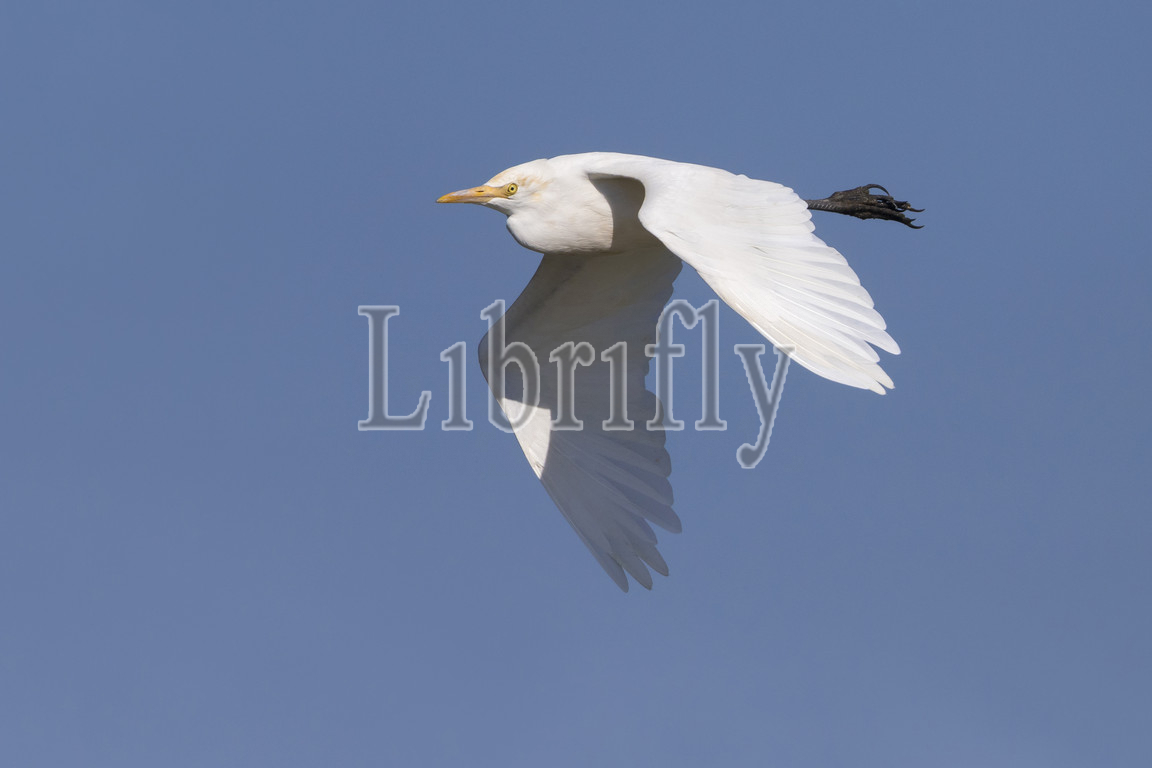 Eastern Cattle Egret in flight, Bubulcus coromandus, China