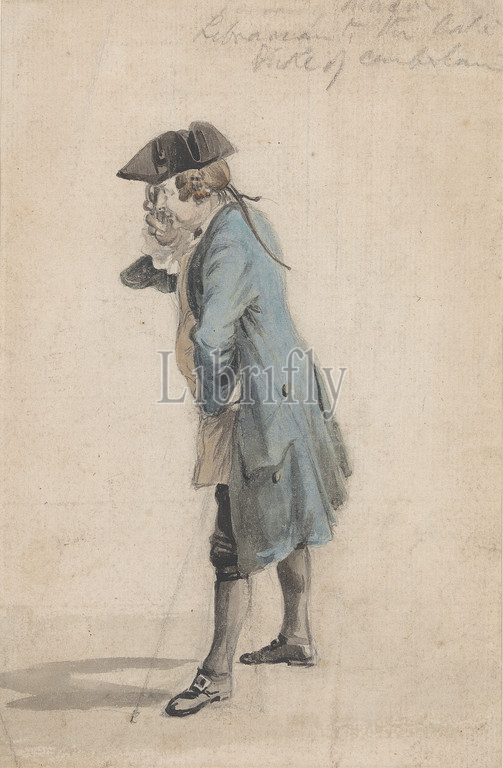 Edward Mason, Paul Sandby RA, 1731–1809, British, 1755, 1760, Watercolor, graphite, medium, sightly texured, cream laid paper, Frame, Sheet, duke, figure study, librarian, monocle