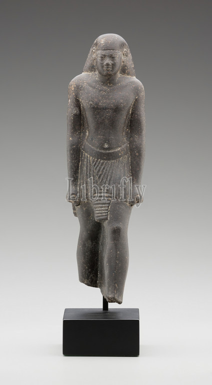Egyptian, Statue of the Priest, Pa-ef-tchau-em-awy-Bastet, 595/589 BC, basalt, 9 1/4 x 2 3/4 x 2 3/4 in.