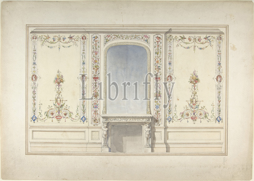 Elevation, Fireplace Wall, Elizabethan Revival Room, ca, 1870–90, Pen, black, brown ink, watercolor, graphite, sheet, 12 5/8 x 17 5/8, 32.1 44.7 cm, John Dibblee, Crace, born, long line, interior decorators, ancestors Edward, Frederic Crace, British, 1725-1799, 1779-1825, responsible, decoration, Royal Pavilion, Brighton, King George, III
