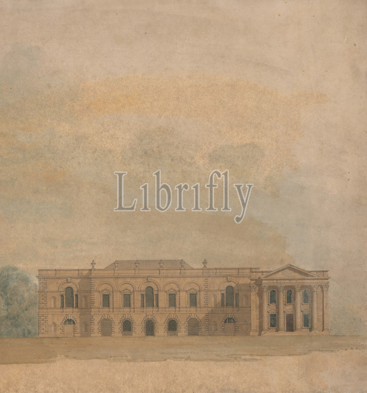 Elevation, Proposed Design, Cambridge Colleges, William Wilkins, 1778–1839, British, Watercolor, pen, black ink, slightly textured, thick, brown wove paper, Sheet, architectural subject
