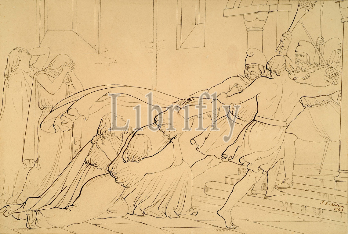 Elgiva Seized by Order of Odo, Archbishop of Canterbury, 1843 John Everett Millais, Drawing, Ink, Pre-Raphaelite
