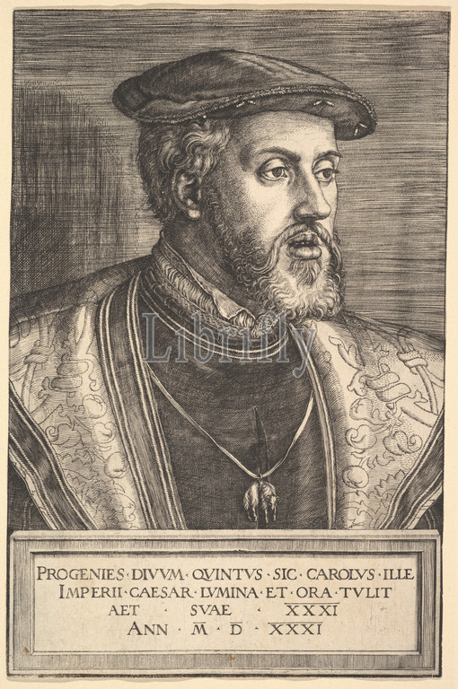 Emperor Charles V, 16th century, Engraving, third state, Sheet, 8 5/8 x 5 5/16, 21.9 13.5 cm, Prints, Barthel Beham, German, Nuremberg ca., 1502–1540, Italy