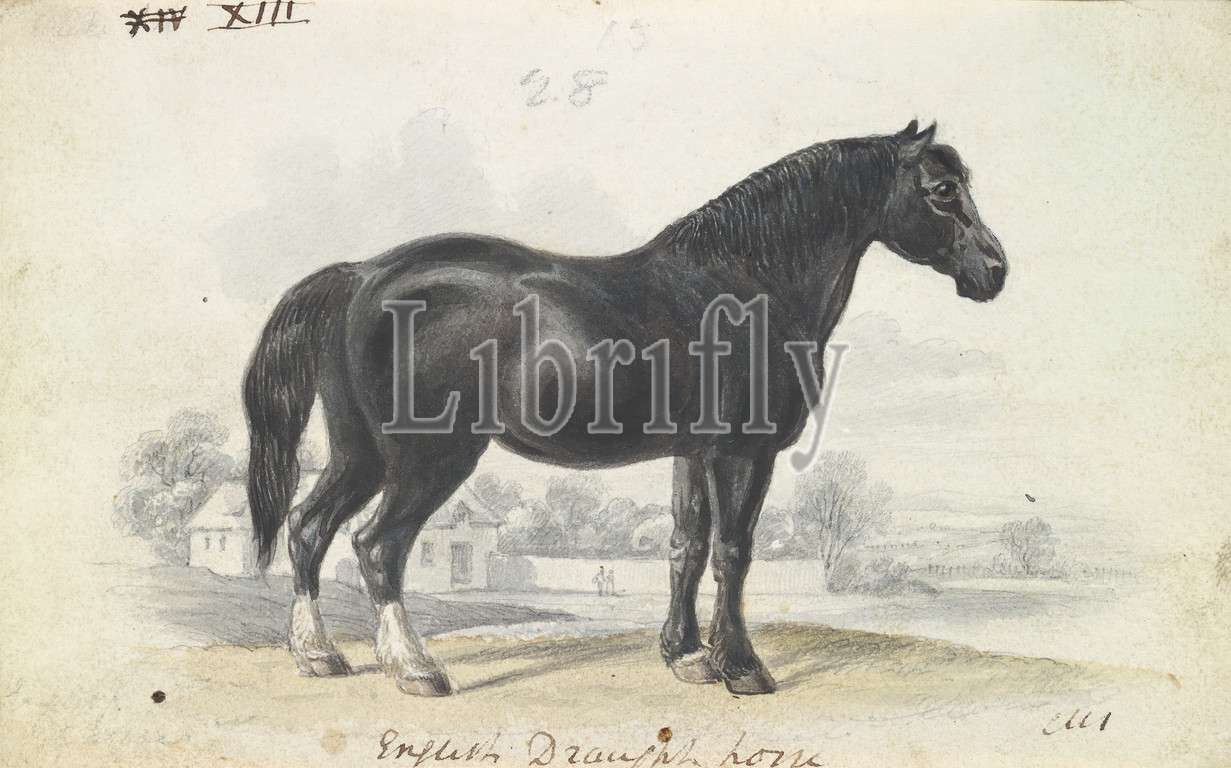 English Draught Horse, Charles Hamilton Smith, 1776–1859, Belgian, ca, 1837, Watercolor, pen, black ink, graphite, medium, slightly textured, cream, wove paper, Sheet, animal art
