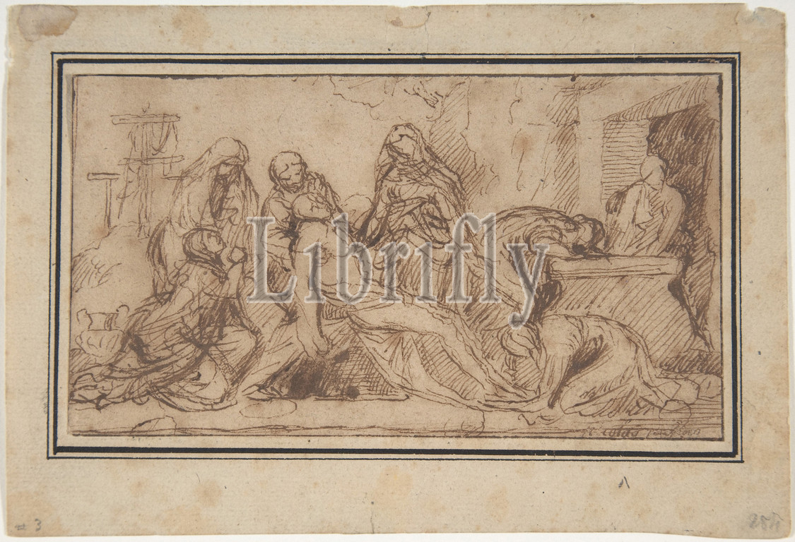Entombment, ca, 1656–57, Pen, brown ink, 3 7/16 x 6 1/8, 8.8 15.6 cm, Drawings, Nicolas Poussin, French, Les Andelys, 1594–1665, Rome, drawing, late, study, Lamentation, National Gallery, Ireland, Dublin