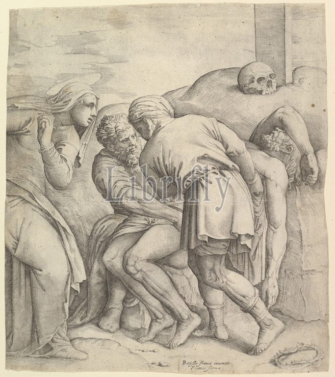 Entombment, Etching, engraving, Second state, sheet, 1 3/8 x 12 3/16, 3.5 31 cm, trimmed, within platemark, Prints, Battista Franco, Italian, Venice ca., 1510–1561, Venice