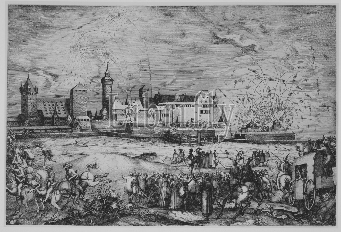Entry, Maximilian II, Nuremberg, June 7, 1570, Etching, engraving, Sheet, 9 1/16, 13 11/16, 23, 34.7 cm, Prints, Jost Amman, Swiss, Zurich before, 1539–1591