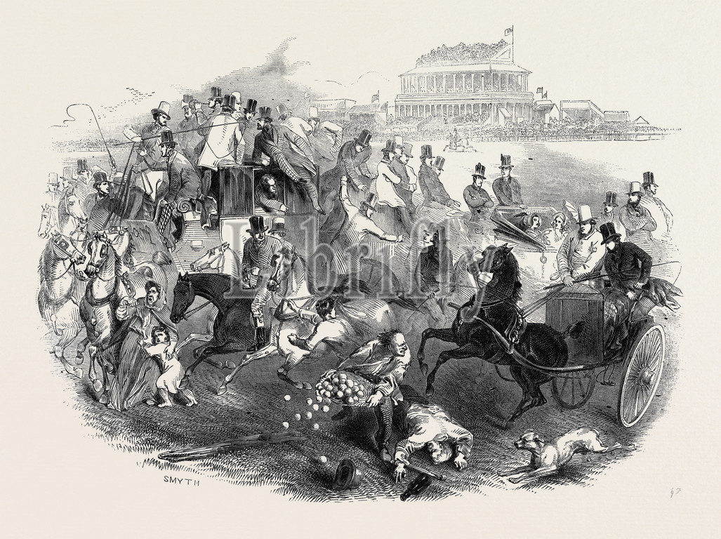 epsom, races, derby, day, leaving, course, uk, 1845 engraving, engraved image, history, illustrative technique, engravement, victorian, arts, culture, retro styled, vintage, retro, arkheia