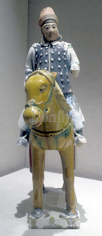 equestrian figure, Ming dynasty, 1400, stoneware, glaze, paint, H. 16-1/2, Asian Art