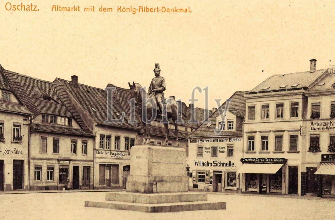 Equestrian statue of Albert of Saxony, Oschatz, Shops in Saxony, Buildings in Oschatz, Monuments and memorials to people in Germany, 1913, Landkreis Nordsachsen, Altmarkt mit König Albert Denkmal