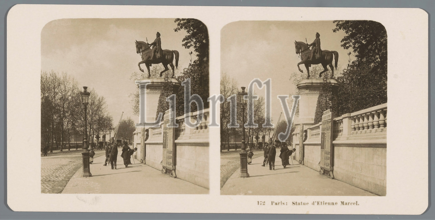 Equestrian statue, Étienne Marcel, Paris Paris, Statue d'Etienne Marcel, title, object, equestrian statue, street, Neue Photographische Gesellschaft, mentioned, Paris, 1904, cardboard, photographic paper, gelatin black-and-white print