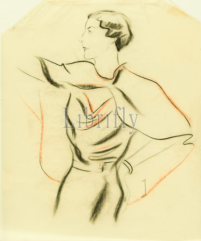 Ernst Dryden, Break, draft, parchment, charcoal, chalk pencil, drawing, chalk drawing, charcoal, monogrammed, recto bottom right, drawing, illustrations, woman