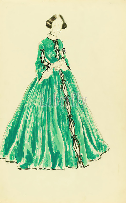 Ernst Dryden, costume, movie, King Steps Out, paper, non-opaque watercolor, pencil, watercolor, drawing, watercolor, lead, dress, fashion, clothing, women's fashion, theater costume