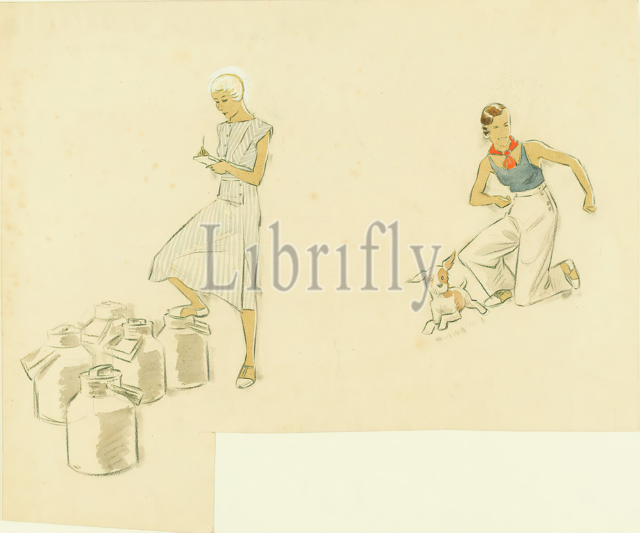Ernst Dryden, dairywoman, paper, pencil, gouache, drawing, gouache, lead, graphics, illustrations, woman