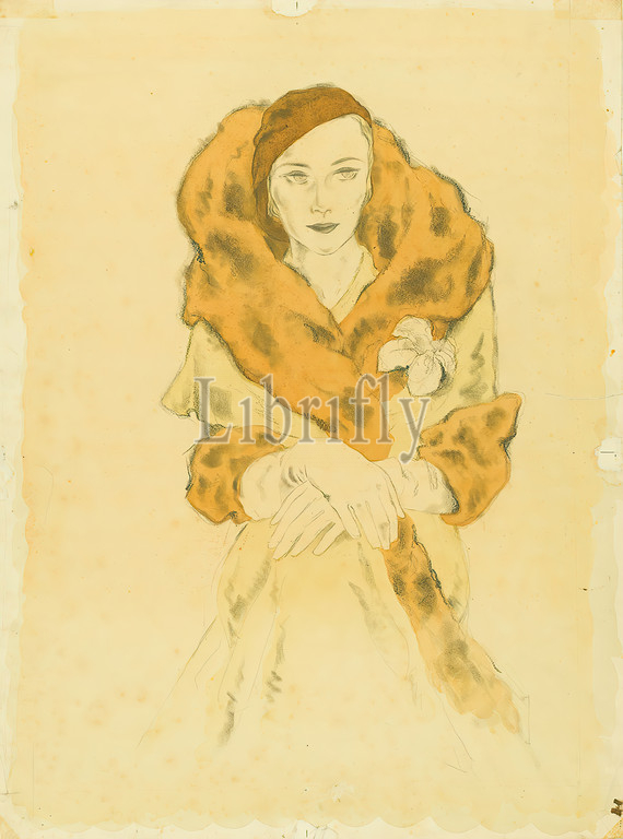 Ernst Dryden, lady, fur coat, cardboard, non-opaque watercolor, pencil, watercolor, watercolor, lead, monogrammed, recto bottom right, drawing, newspapers, magazines, illustrations, drawing, graphics, woman