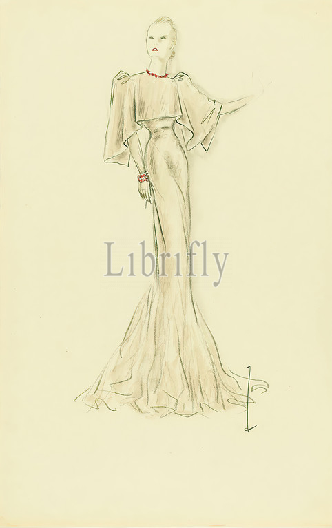 Ernst Dryden, Lady, light grey evening gown, paper, watercolor, pencil, watercolor, drawing, watercolor, pencil, recto bottom right, drawing, drawing, graphics, illustrations, fashion, clothing, women's fashion, dress