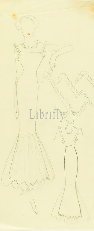 Ernst Dryden, lady, tight dress, parchment, drawing, pencil drawing, red crayon, fashion, clothing, women's fashion, dress, fabric, fabric, textiles