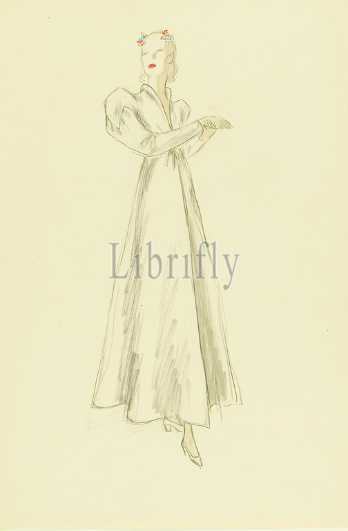 Ernst Dryden, Lady in white dress, paper, Non-covering watercolor, pencil, watercolor, drawing, watercolor over pencil, Total: Height: 45.9 cm; Width: 30.9 cm, drawing, graphics, illustrations, fashion, clothing, women's fashion, dress