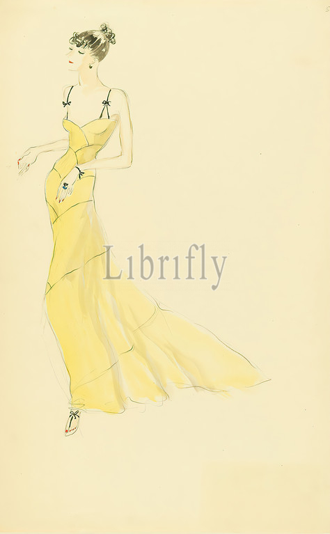 Ernst Dryden, Lady, yellow evening gown, paper, watercolor, pencil, watercolor, drawing, watercolor, pencil, graphics, illustrations, fashion, clothing, women's fashion, dress