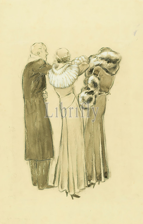 Ernst Dryden, winter coats, paper, pencil, covering watercolor, gouache, drawing, gouache, lead, fashion, clothing, men's fashion, women's fashion, winter