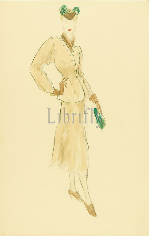 Ernst Dryden, woman, beige costume, paper, watercolor, watercolor, drawing, watercolor, pencil, fashion, textile design, illustrations, fashion, clothing, women's fashion, dress, accessories, accessories, clothing