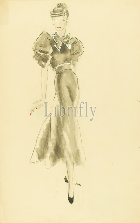 Ernst Dryden, woman, grey dress, paper, watercolor, watercolor, drawing, watercolor, pencil, fashion, textile design, illustrations, fashion, clothing, women's fashion, dress
