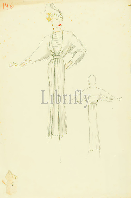 Ernst Dryden, woman, white dress, paper, non opaque watercolor, pencil, watercolor, drawing, watercolor, pencil, numbered, recto top left, graphics, illustrations, fashion, clothing, women's fashion, dress