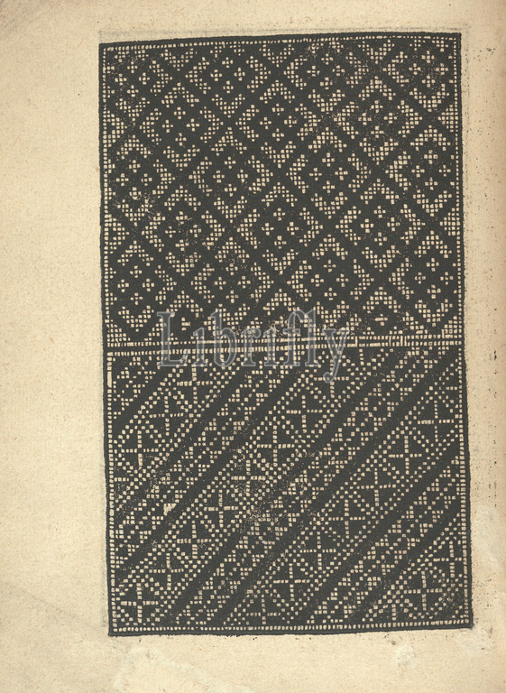 Ce est ung tractat de la noble art leguille ascavoir ouvraiges s, page 17, verso, 1527, Woodcut, Overall, 6 7/8 x 5 11/16, 17.5 14.5 cm, Printed, Willem Vosterman, top, bottom, left, right, Design composed, 2 horizontal registers, Top register, decorated, pattern, diamonds within, diamonds, Bottom, ornamented diagonal, lines
