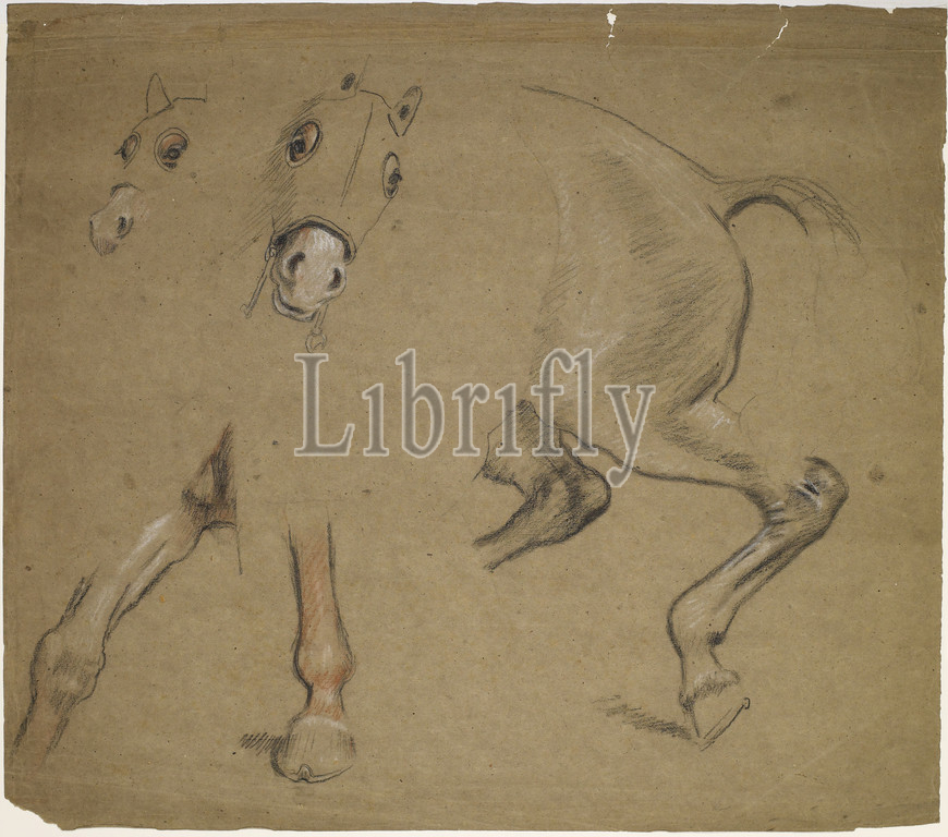 Establishment, Flemish Weavers, Manchester .D, 1363, Four Studies, Parts, Horse, 1879-82 Ford Madox Brown, Drawing, ChalkPre-Raphaelite, Animal, Horse