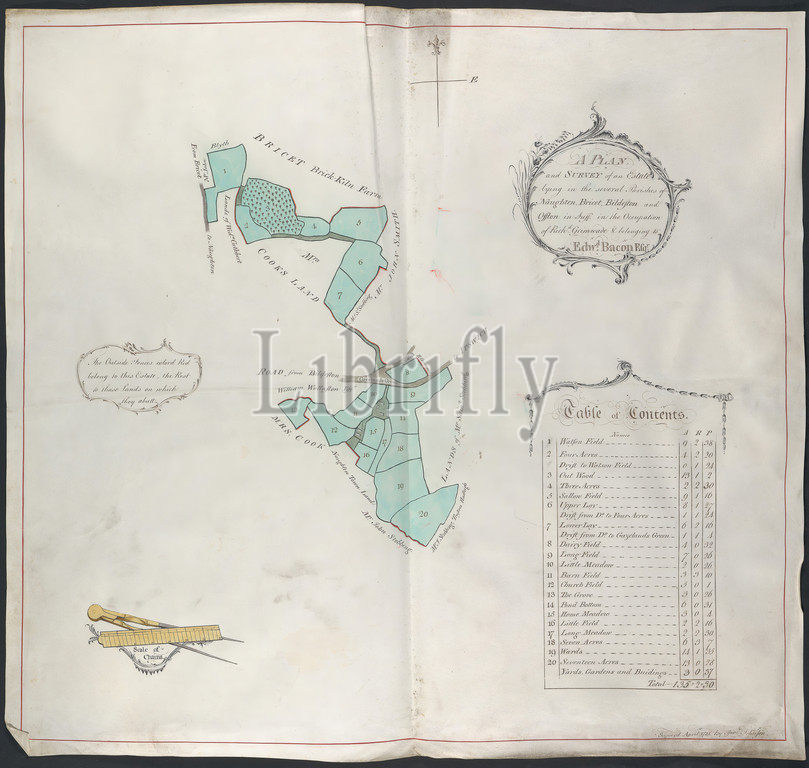 An Estate in Naughton, Bricett, Bildeston and Offton, Suffolk, Isaac Johnson, 1754–1835, British, 1781, Graphite, pen and black ink and watercolor on smooth, moderately thick, white wove paper, Sheet: 22 1/2 × 24 inches (57.2 × 61 cm), architectural subject, house, surveys