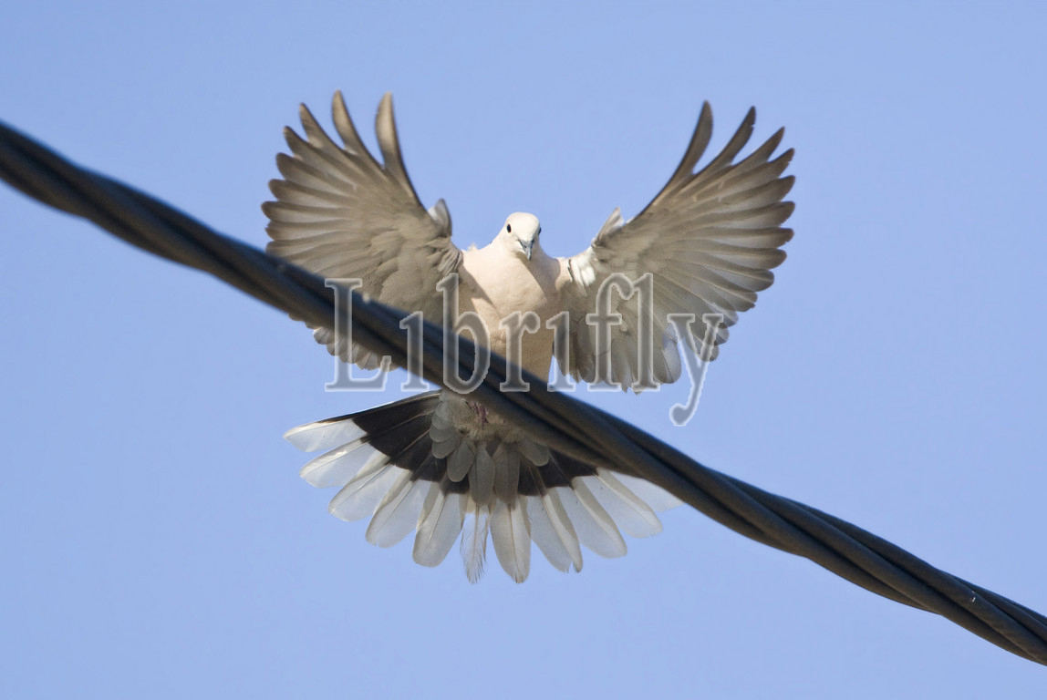 Eurasian Collared Dove landing, wire, Streptopelia decaocto, nature, bird, animal, wildlife, wild, fauna, natural, feather, sky, beak, wing, outdoor, freedom, colourful, Liszt, Natural History, ornithology, vertebrate animals, photography, color image