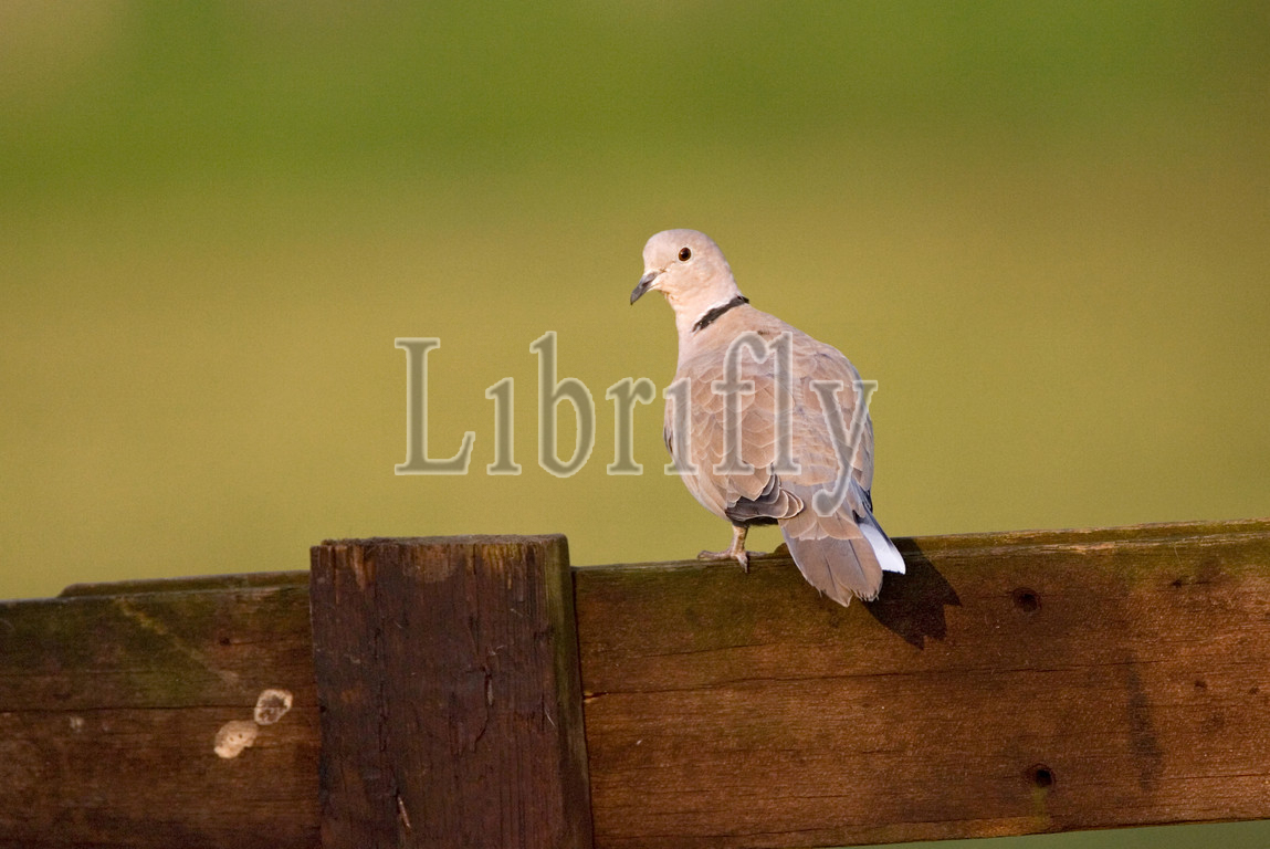 Eurasian Collared Dove perched on wooden fence, Streptopelia decaocto