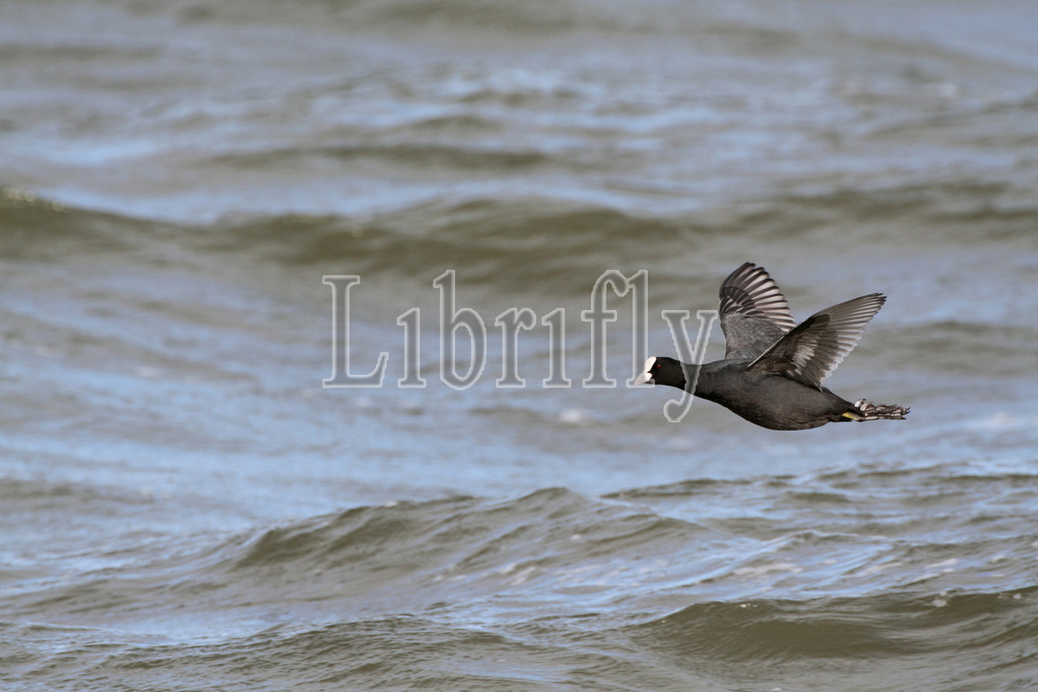 Eurasian Coot in flight, Fulica atra