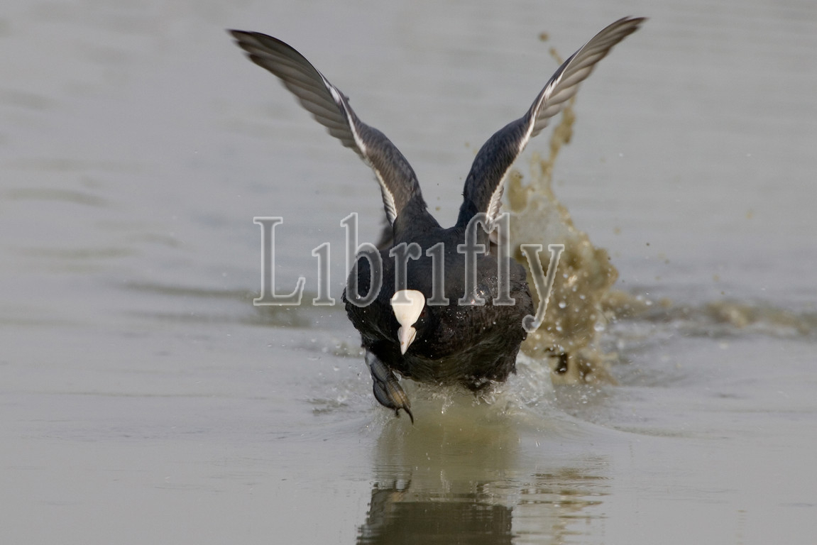Eurasian Coot taking off, Fulica atra, Italy