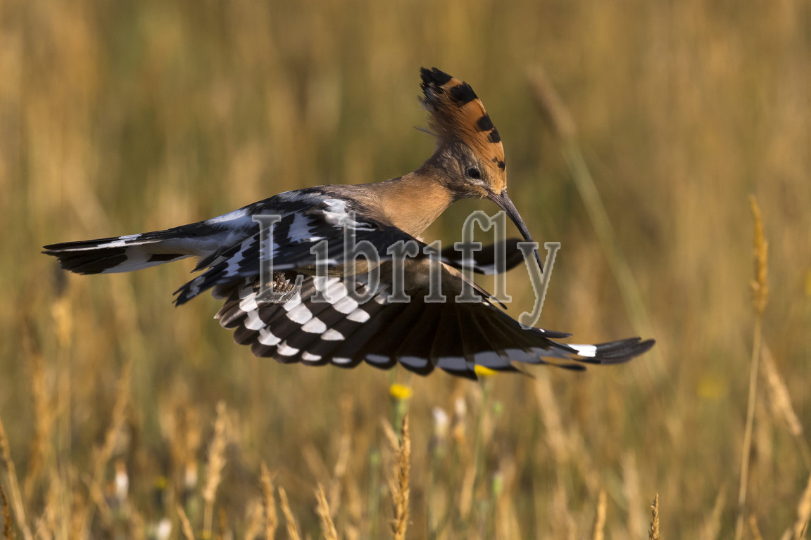 Eurasian Hoopoe in flight, Upupa epops, Italy