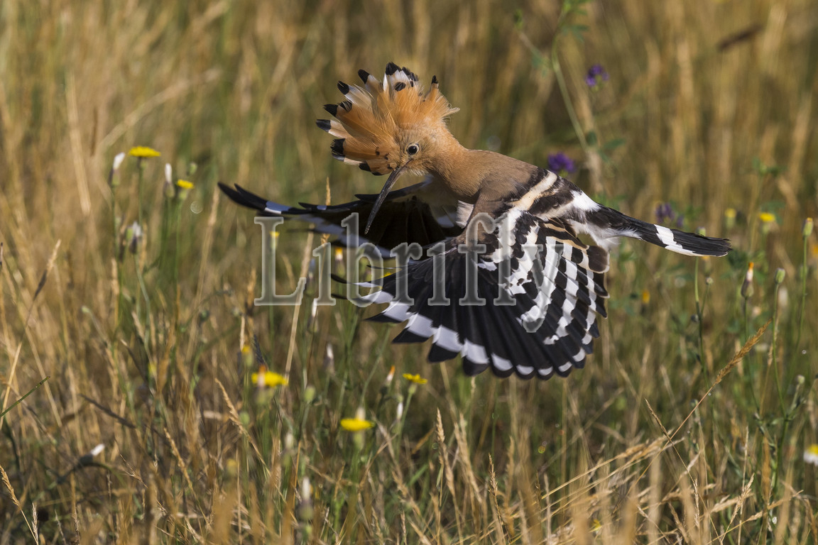Eurasian Hoopoe in flight, Upupa epops, Italy