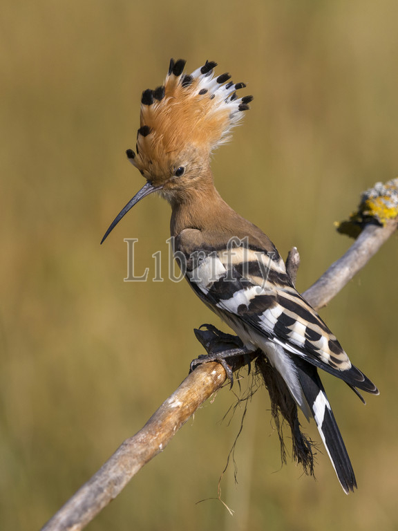 Eurasian Hoopoe perched on a branch, Upupa epops, Italy
