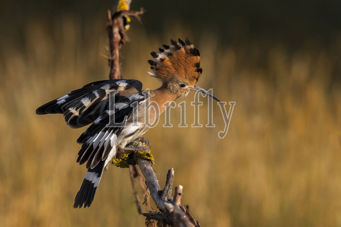 Eurasian Hoopoe perched on a branch, Upupa epops, Italy