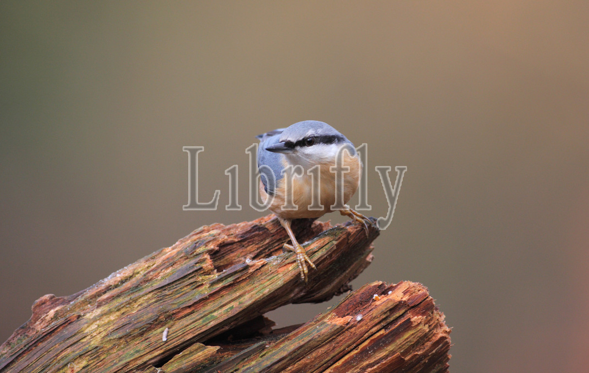 Eurasian Nuthatch on a trunk, Sitta europaea