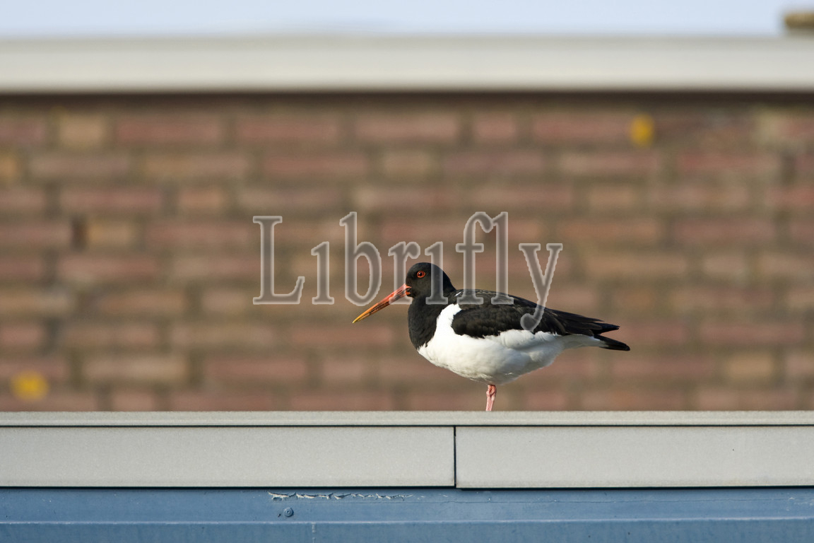 Eurasian Oystercatcher standing on a roof, Haematopus ostralegus