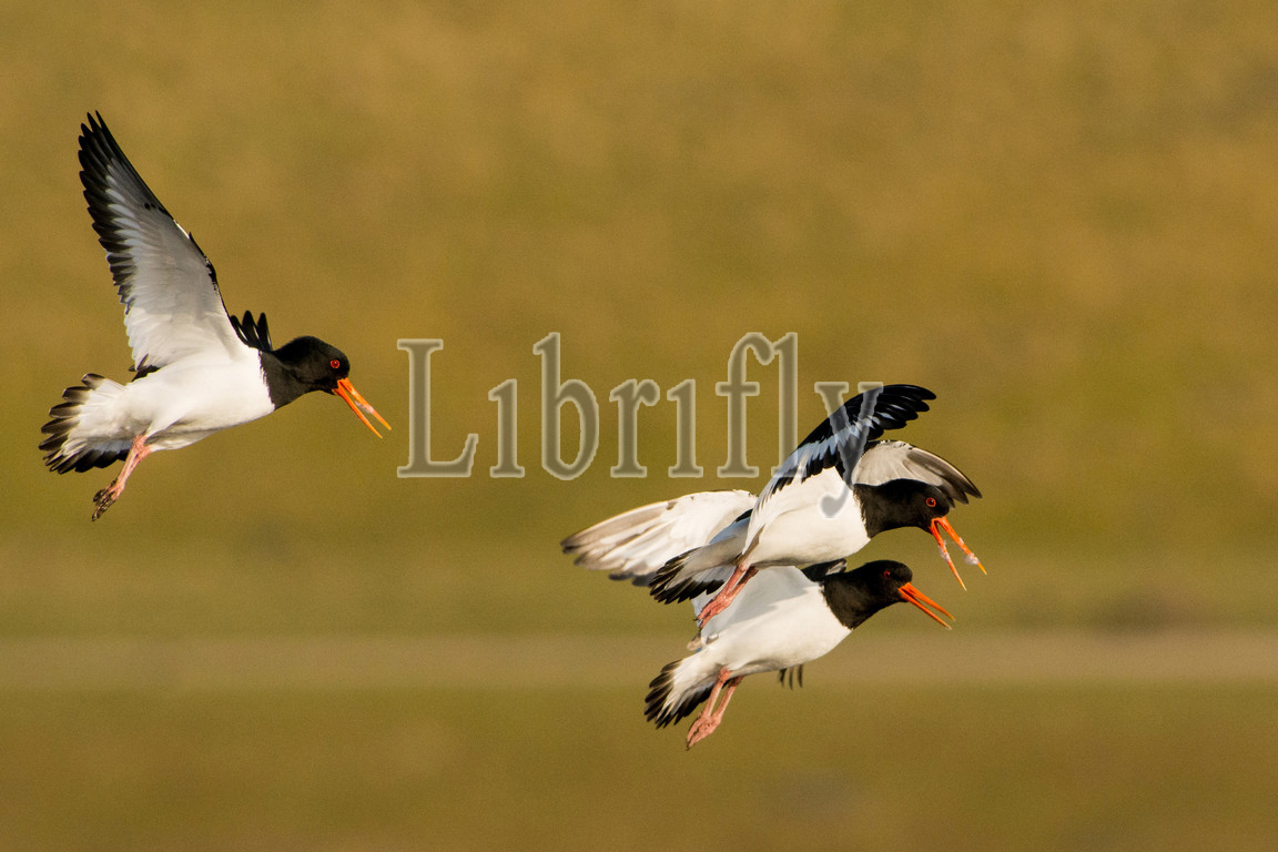 Eurasian Oystercatchers in flight, Haematopus ostralegus